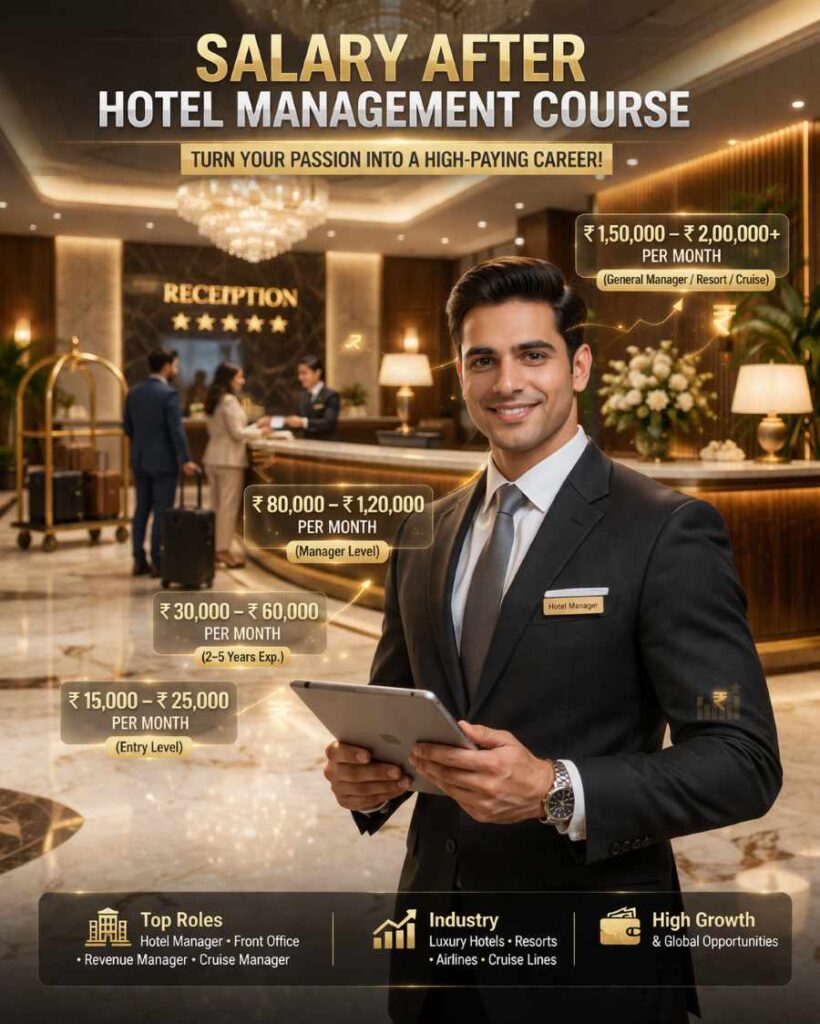 So basically, the hotel management course salary depends heavily on experience and the country you choose. Growth is fast in this industry — if you have good communication skills, personality, and practical knowledge, your salary can increase quickly within a few years.